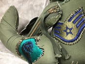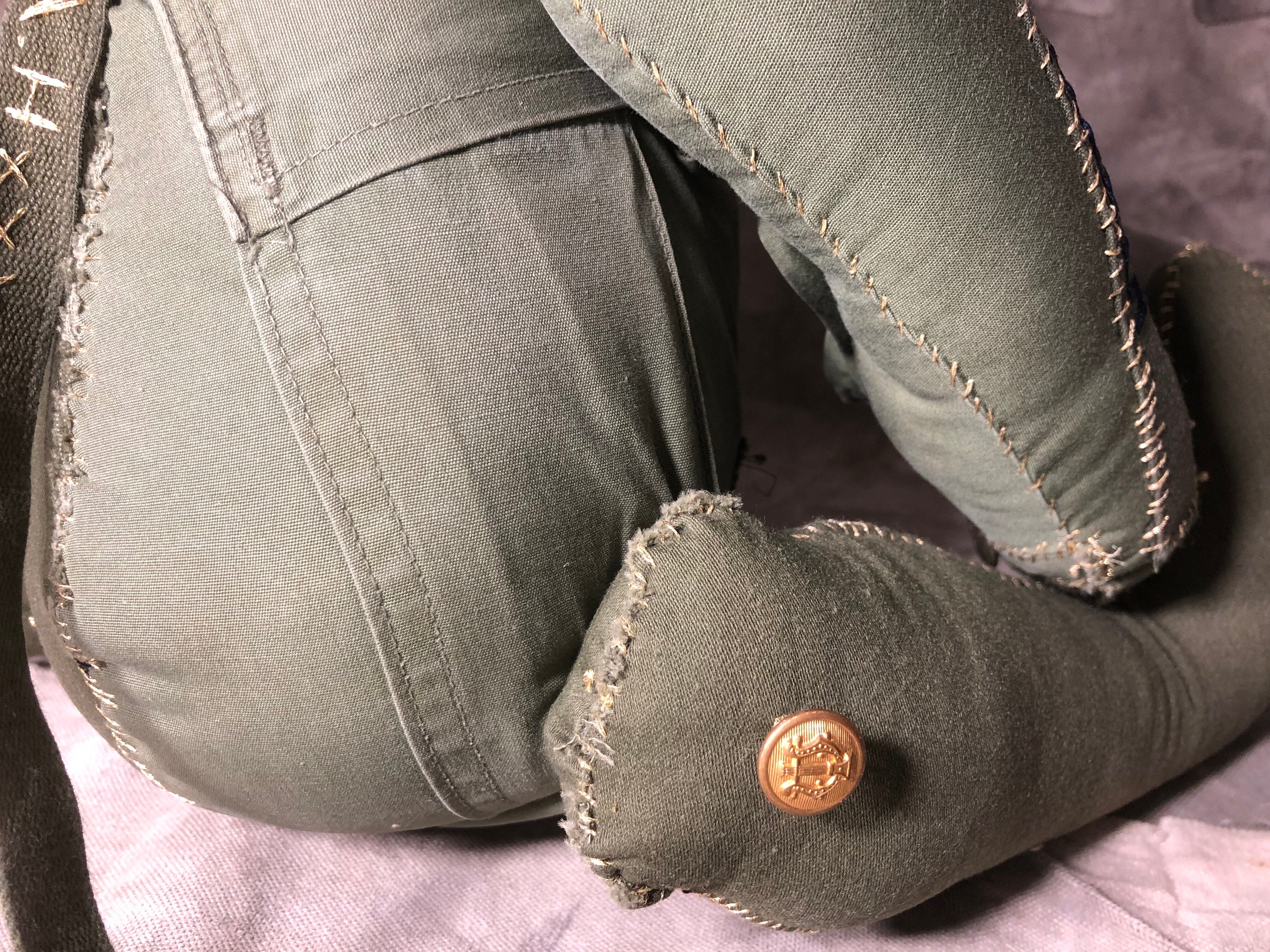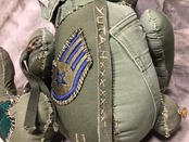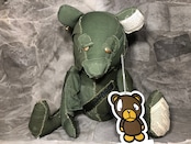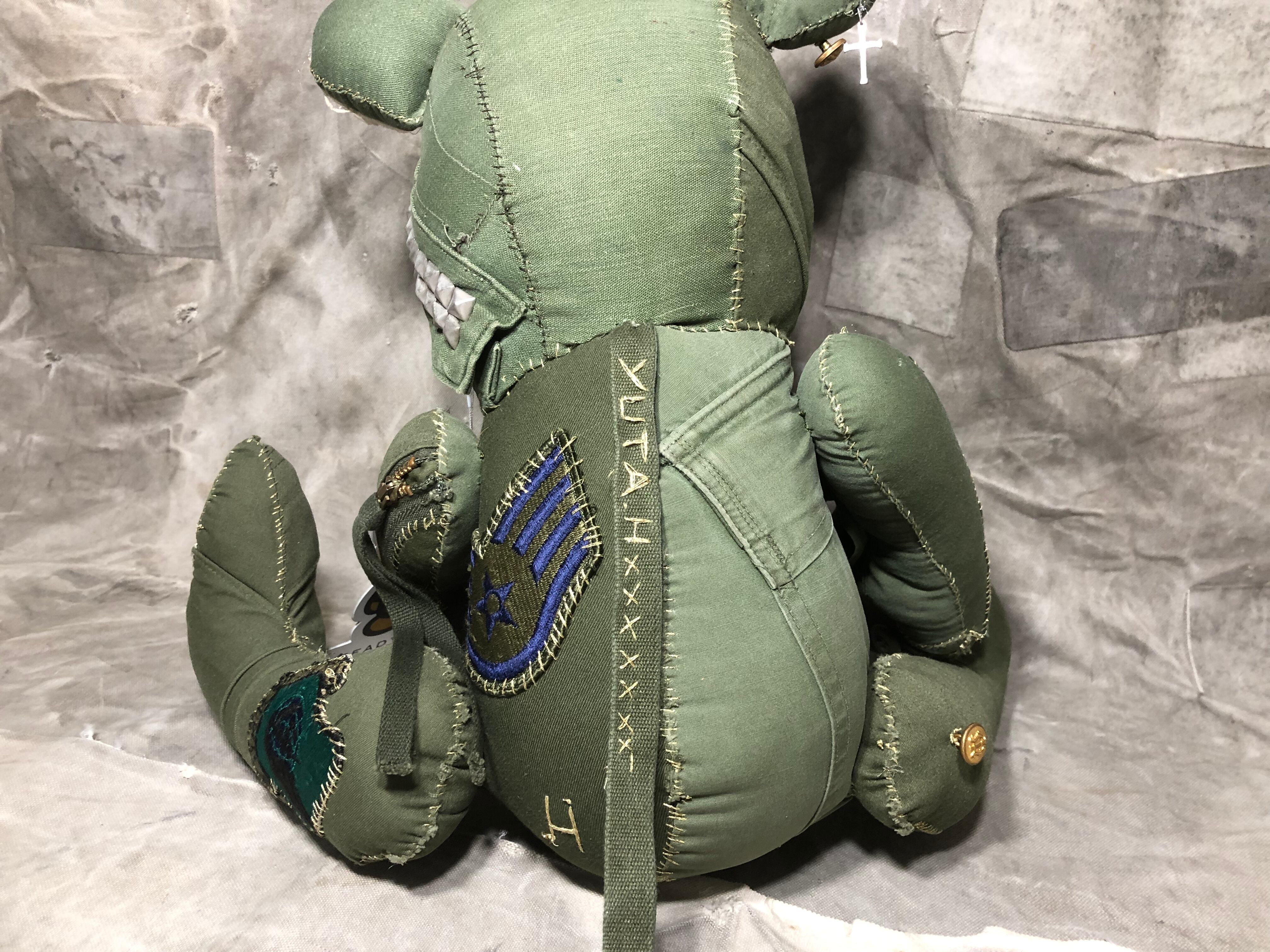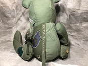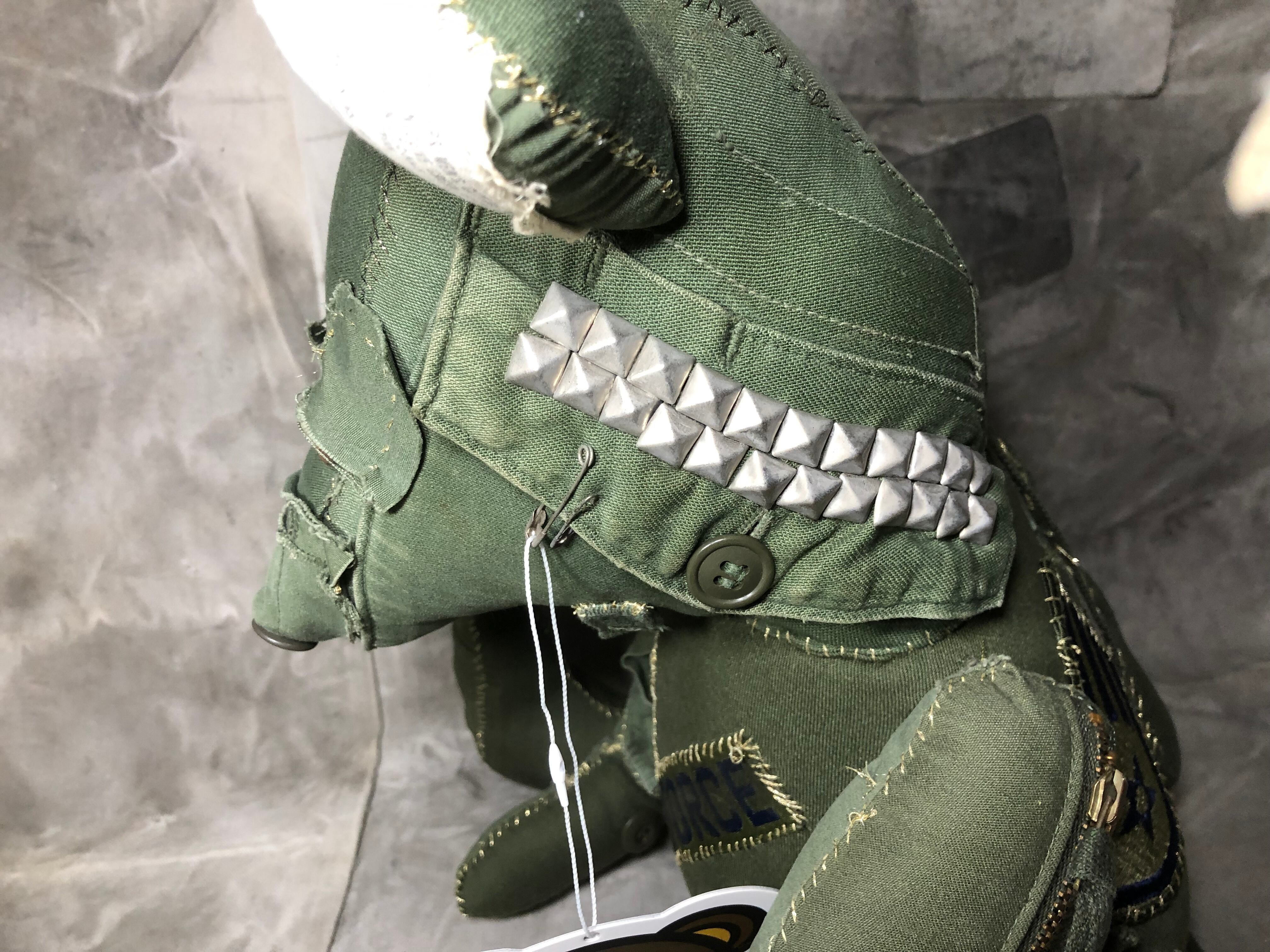 ワッペンが貼られデザイナーさんのネームが刺繍されており腕にZIP、頬には大量のスタッズが御座います。小さいベアは別出品となります