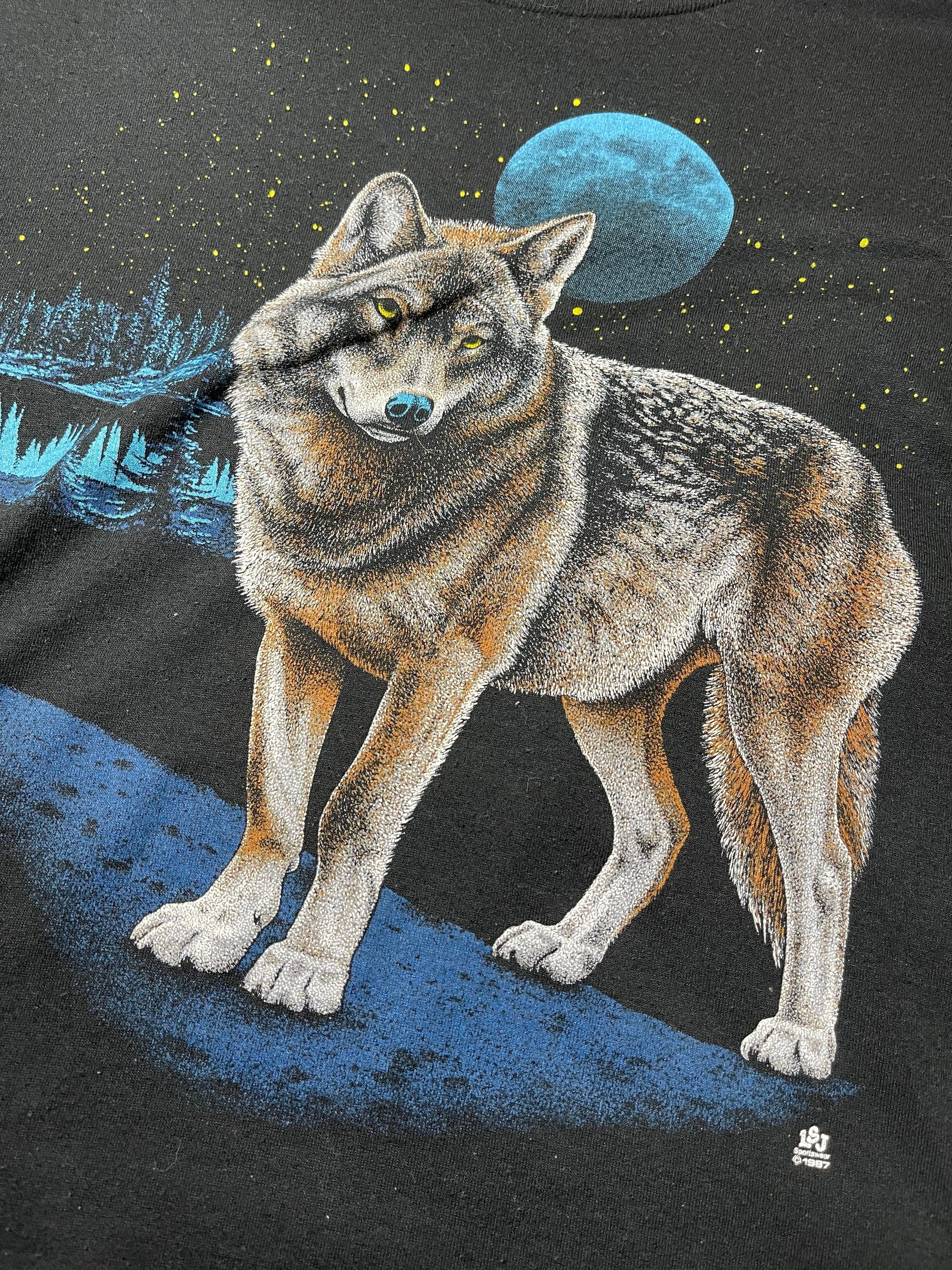 80'S ヴィンテージ TEE Animal wolf JERZEES USA タグ、コピーライトあり アニマルTEE